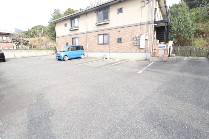 駐車場付きの2LDK。TVインターホン・宅配ボックス付き。