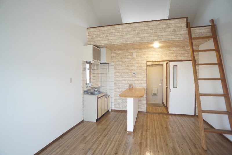広めの洋室にキッチンがちょっとお洒落なカウンターになってます