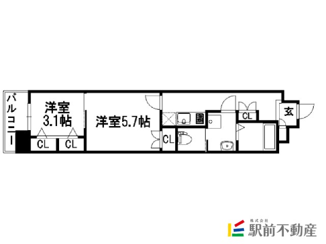 福岡県福岡市中央区渡辺通の賃貸マンション 2K 14階 33.71㎡ 8.6万円の賃貸