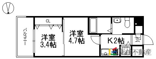 | 間取り(面積) | 2K(24.46㎡) |