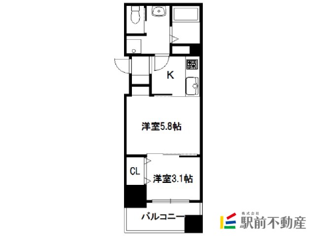 福岡県福岡市中央区地行の賃貸マンション 2K 8階 28.1㎡ 6.4万円の賃貸