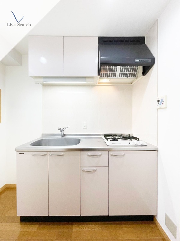2口コンロ、シャンプードレッサー付きで設備充実の1K。