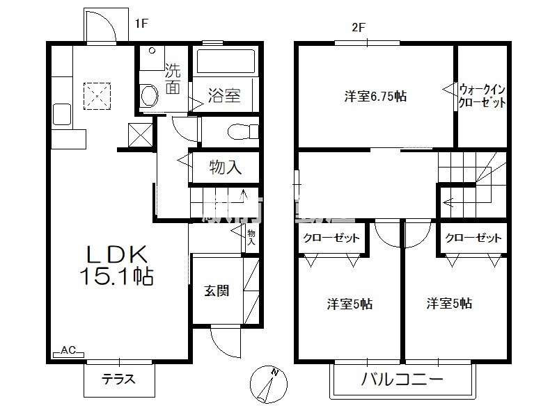 人気アパートシリーズ◆オールフローリングメゾネット3LDK◆広さ重視の方にぴったりな間取です!南向きで日当たり良好♪