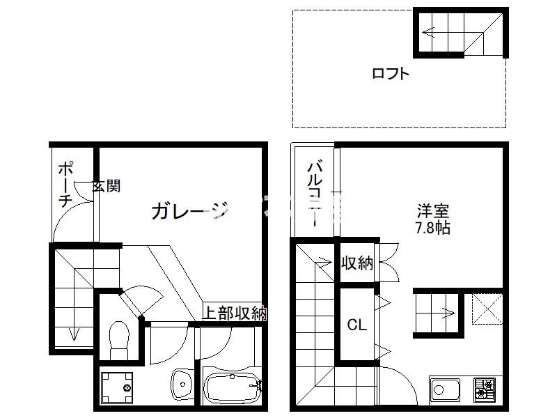 自転車、バイクを雨風から守るガレージ付き!収納としても活用できます♪ロフト付きメゾネット1R★初期費用分割相談可★