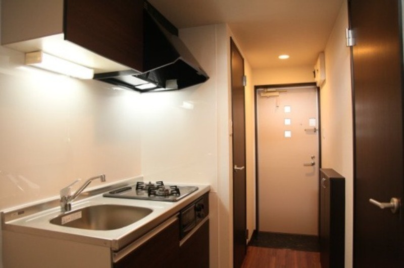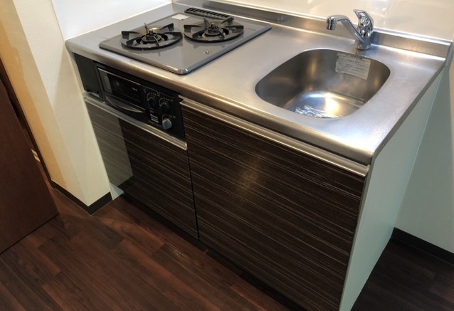 独立洗面台・2口コンロ付き。
