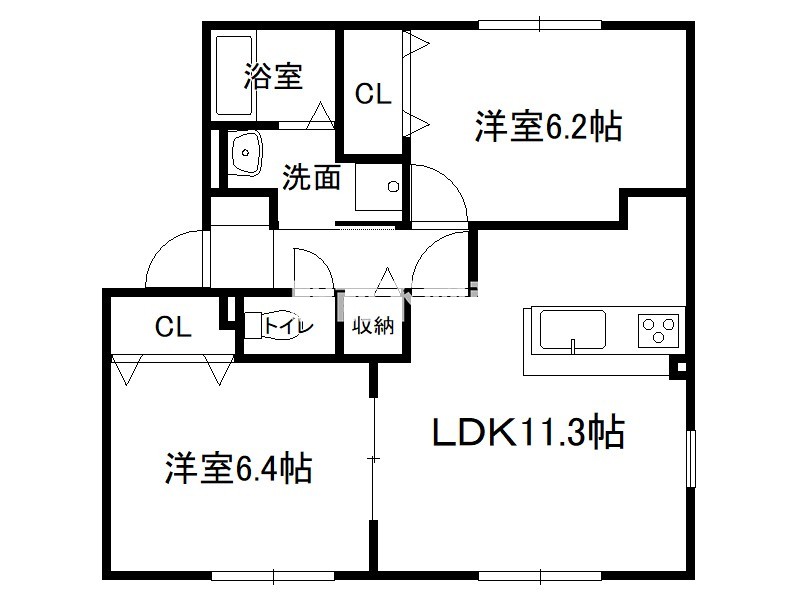 スクエア田村B 2LDK 2階 54.84㎡ 7.4万円の賃貸