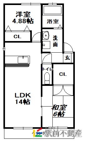 グリーンパーク大善寺Ⅱ 2LDK 1階 55.24㎡ 5.3万円の賃貸