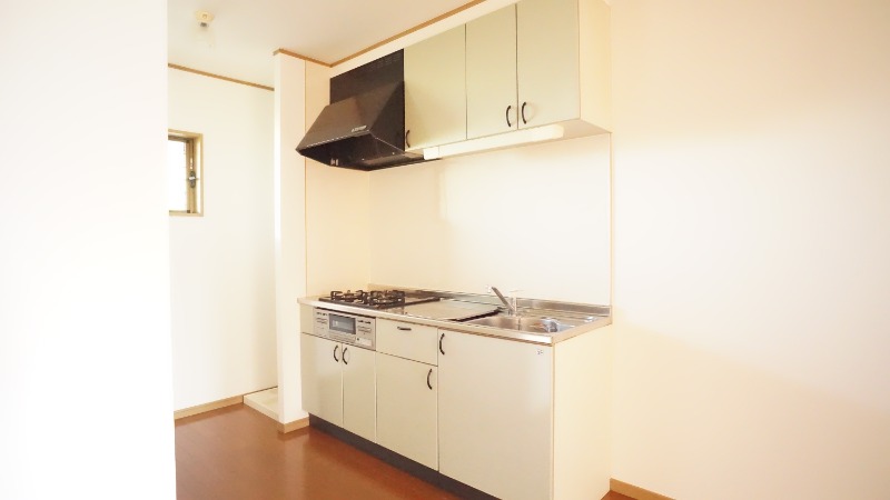 駐車場2台分空きあり3口コンロのシステムキッチンです
