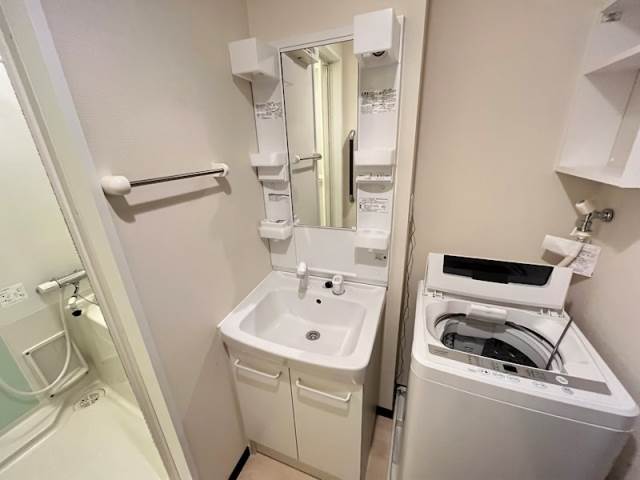 家具家電付で独立洗面台があるお部屋です。浴室乾燥など設備充実