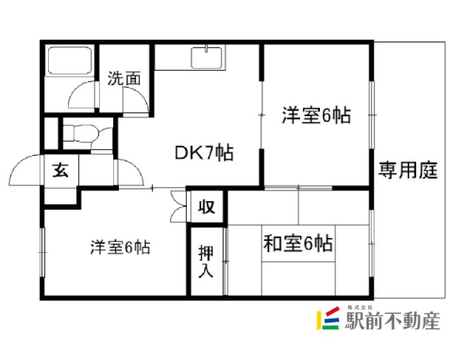 閑静な住宅街のペット可3DK★うれしいひろびろ専用庭♪