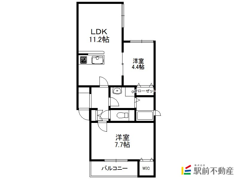ホークヒルズ古賀 2LDK 3階 50.84㎡ 7.7万円の賃貸