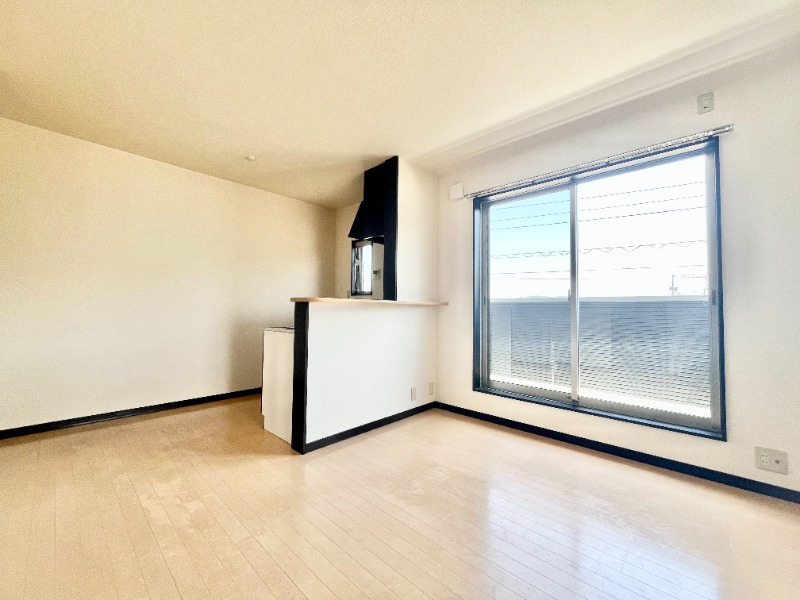 カウンターキッチンの2LDK。フローリングは明るい白基調
