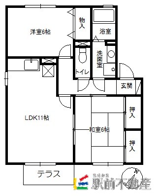 福岡県糟屋郡新宮町大字原上の賃貸アパート 2LDK 1階 55.44㎡ 6.7万円の賃貸