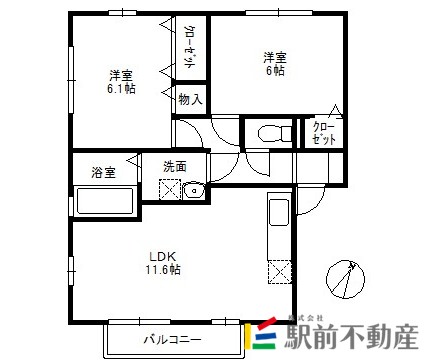 巨勢エリアの2LDK物件です☆インターネット無料♪宅配ボックス付♪温水洗浄便座と追い炊き機能もあります!