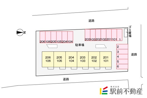 | その他費用 | 駐車場備考: 1・2・3・4・5・6・103・206 鍵交換:3,300円 クリーニング費:60,000円 町費:1,100円 水道代:実費 24時間サポート 毎月330円 |