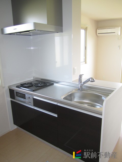 システムキッチン(2口コンログリル付き)・エアコンも1基ついてます!!
