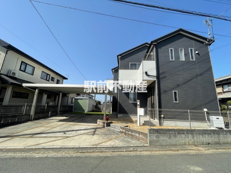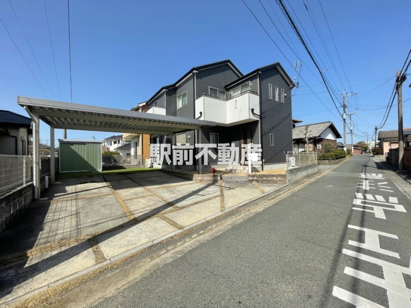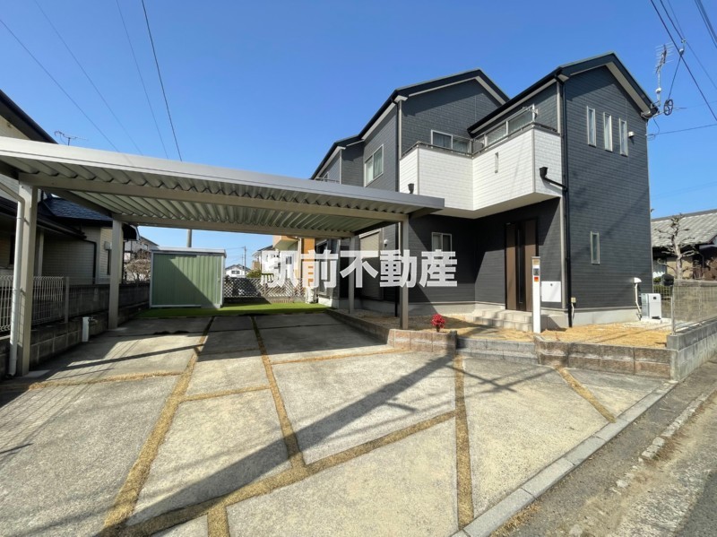 太陽光2024年設置、外壁塗装・カーポート2025年完了済でメンテナンス面も安心。荒木小徒歩3分、駐車4台可能な中古戸建です。