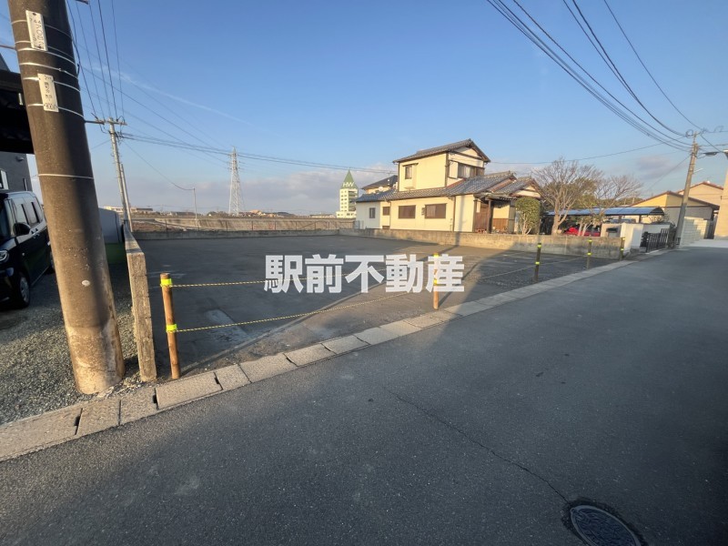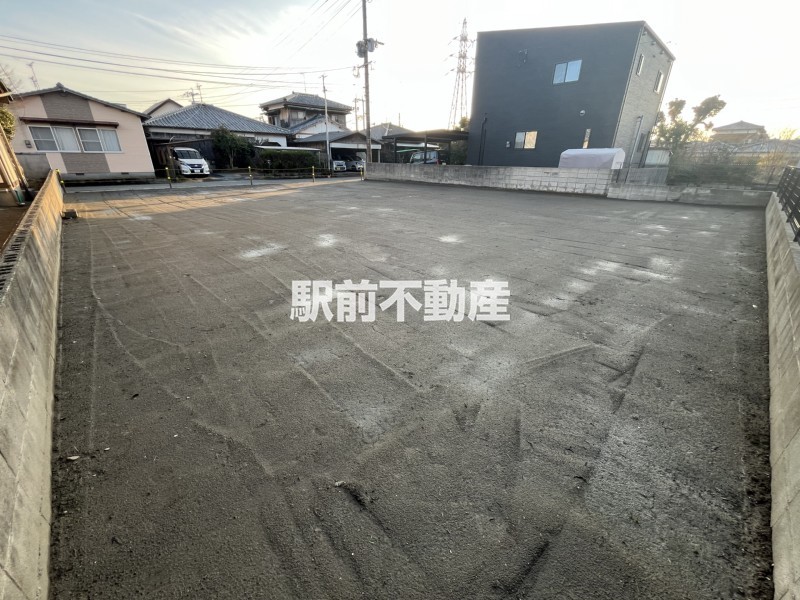 前面道路もスッキリ。車の出し入れもスムーズな、ゆとりの整形地。上下水道引込済みです。