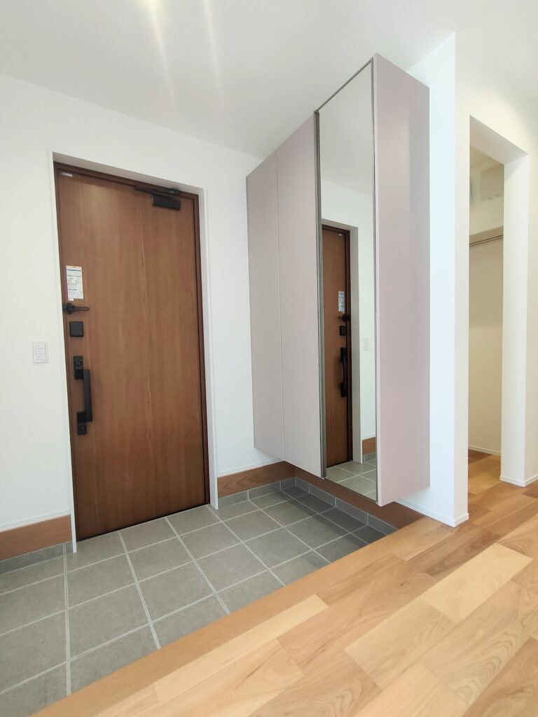 玄関はスマートキーで、鍵を出さなくても開錠と施錠が可能です。買い物などで手がふさがっているときに便利なため、人気の高い設備です。