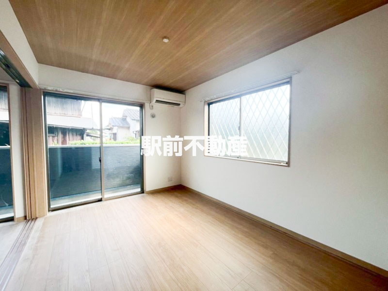 天井や床材、建具に木目調を採用した、温かみのあるモダンスタイル。リビングにはエアコンが設置済みのため、入居時の準備費用を抑えられます。
