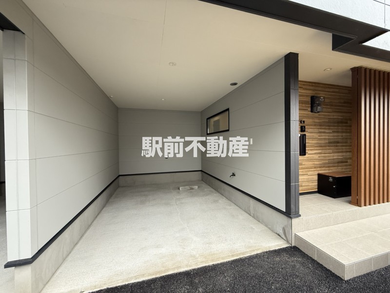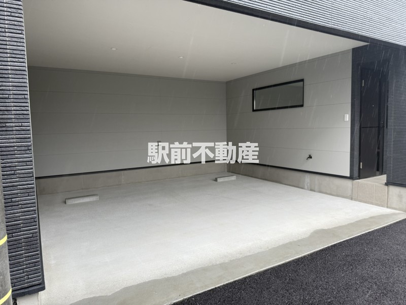 筑前町や大刀洗町では珍しいガレージタイプ。雨の日でも濡れずに乗り降りでき、荷物が多くても玄関まですぐなので便利です。大事なお車も、雨や直射日光から守ることができます。