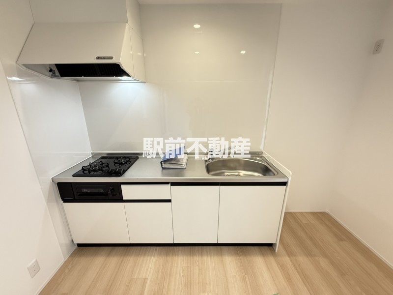 キッチンは2口コンロ付きで、入居時にコンロの準備が不要。初期費用を抑えられるのも魅力です。調理スペースも広く、作業のしやすいキッチンとなっています。