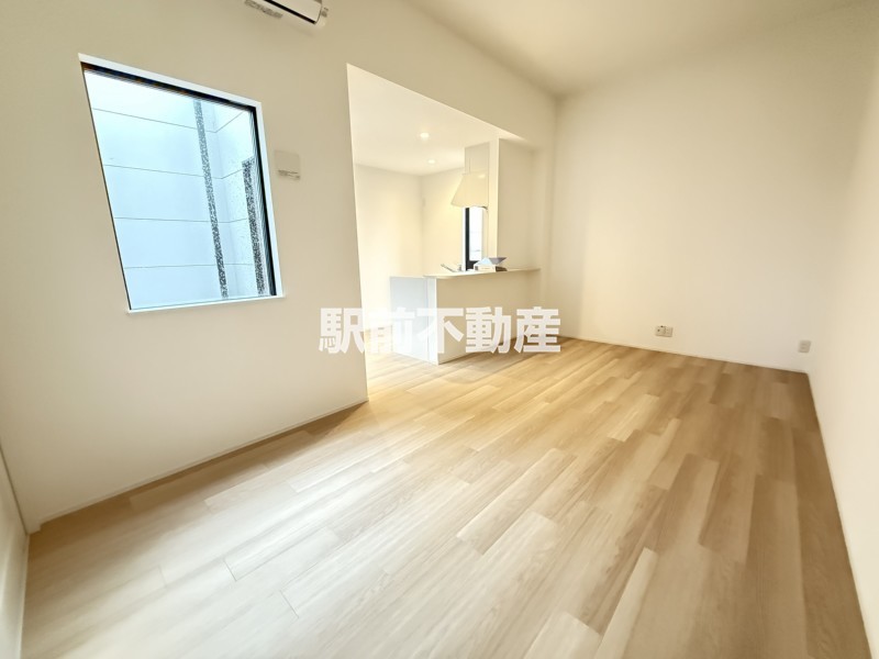 リビングは横長タイプで、家具の配置もしやすいです。光庭もあるため、しっかり室内に太陽光が入ります。